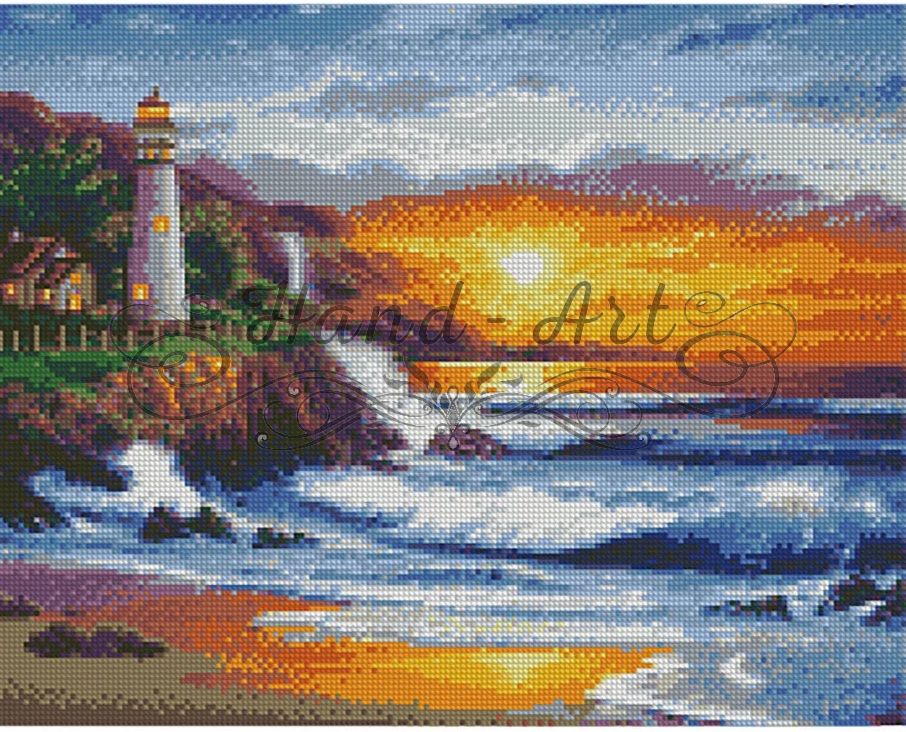 Жанр:пейзаж .Комплектація: полотно із клейовим шаром; дерев'яний підрамник; акрилові стрази згідно з комплектацією набору; пінцет для страз; спеціальна ручка-стилус для роботи зі стразами; гель-клей; лоток для сортування страз.