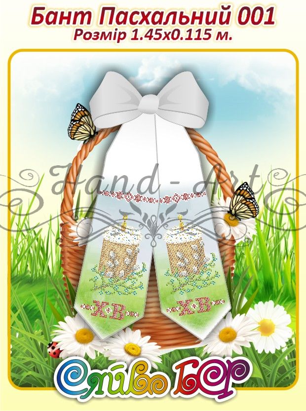 Готові великодні банти для вишивки тканина-габардин,. Розмір банта 145 х 11,5см. В комплект до банту входить флізелін.