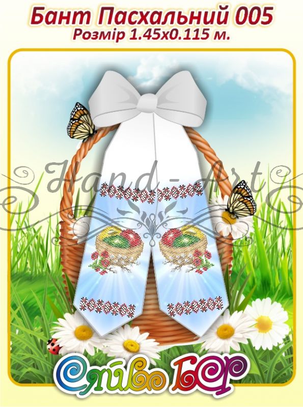 Готові великодні банти для вишивки тканина-габардин,. Розмір банта 145 х 11,5см. В комплект до банту входить флізелін.