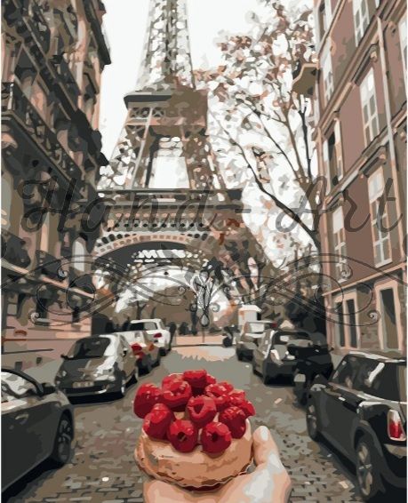 Картина за номерами Кекс з малиною на фоні Ейфелевої вежі