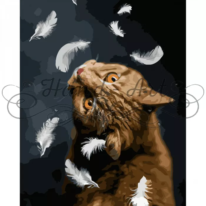 Картина за номерами Котик та пір'їни