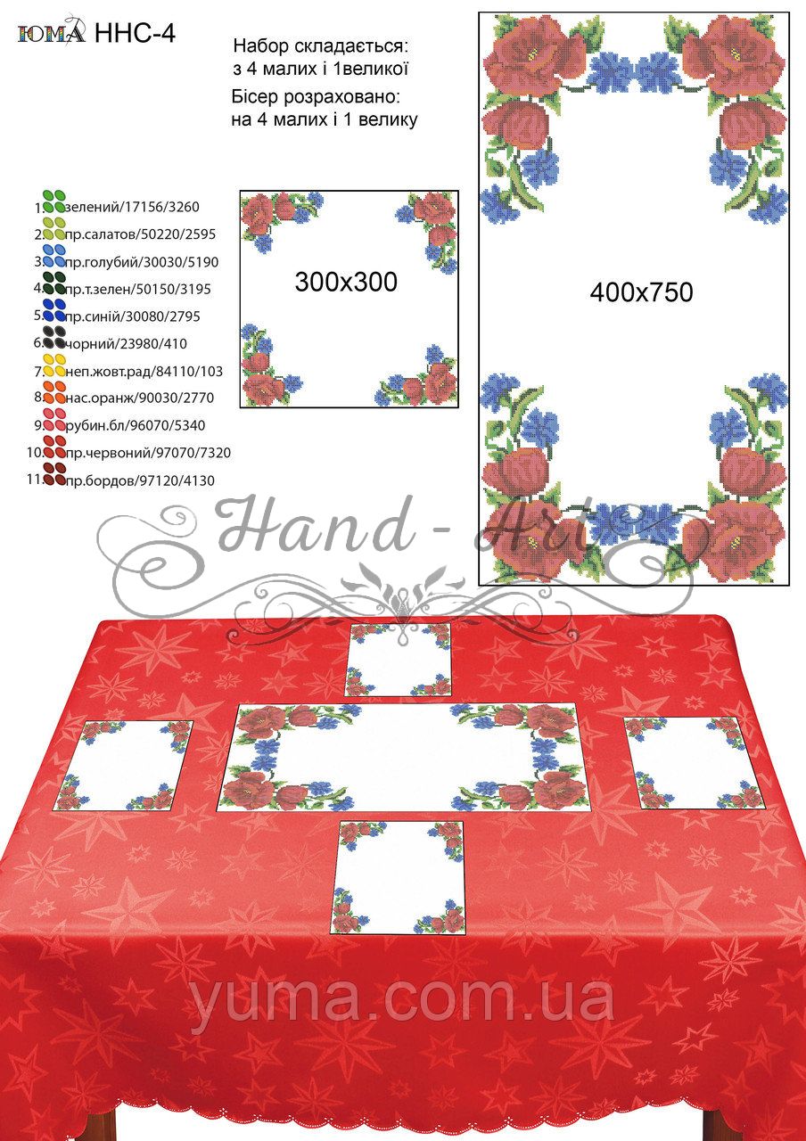 У комплект входить велика серветка 40 см на 75 см, 4 серветки 30 см на 30 см.