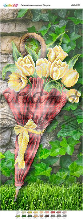 Панно для вишивки Парасолька з жовтими тюльпанами