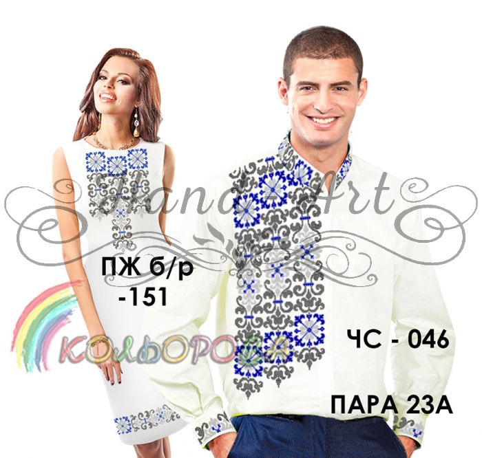 Комплект вишиванок для пар складається з чоловічої сорочки (ЧС-046) та плаття жіночого без рукавів (ПЖб/р-151).