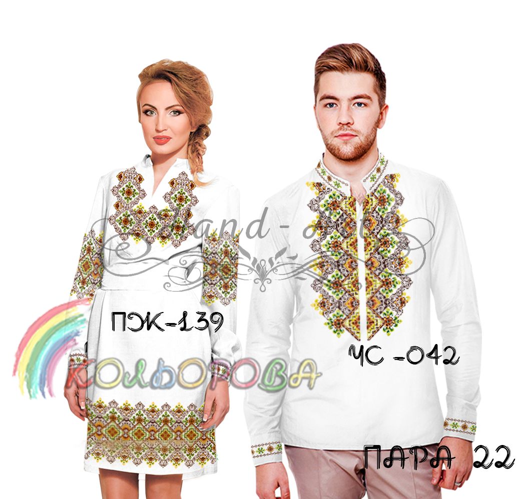 Комплект вишиванок для пар складається з чоловічої сорочки (ЧС-042) та жіночого плаття з рукавами (ПЖ-139).