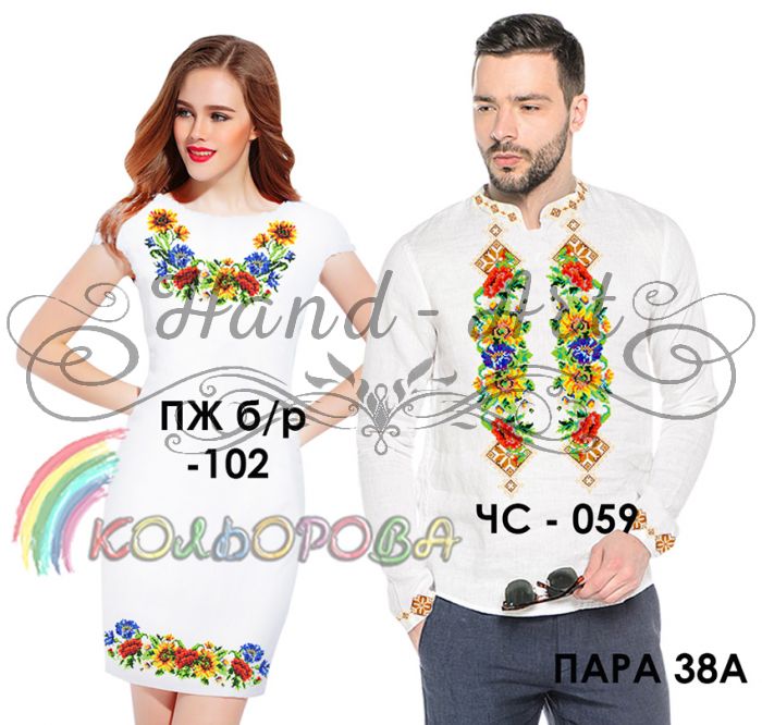 Комплект вишиванок для пар складається з чоловічої сорочки (ЧС-059) та плаття жіночого без рукавів (ПЖб/р-102).