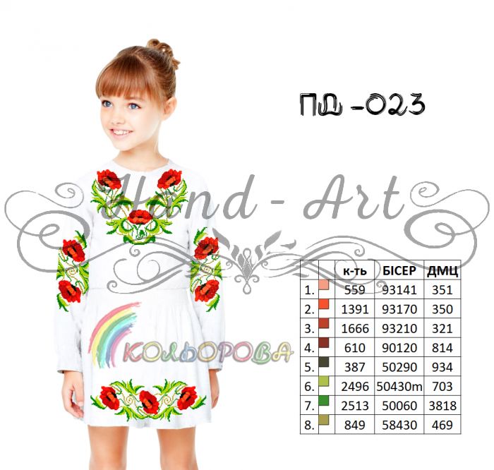 Заготовка під вишивку плаття дитячого з рукавами для дівчинки віком від 5 до 10 років.Плаття не пошите. Заготовка для вишивки бісером або нитками складається з чотирьох відрізів тканини з запасом.Розміри матеріалу: два рукава (40см.*60см.)+/- 2см. та основа (60см.*100см.)+/- 2см. Під вишивку бісером рекомендуємо підклеїти флізелін (додається в комплекті). Під вишивку нитками флізелін підклеювати не обов'язково! На чорній тканині малюнок не наноситься. В даному випадку малюнок друкується на водорозчинному флізеліні, який входить в комплект. Дану заготовку Ви можете пошити за своїми розмірами та фасоном. Заготовки для вишиванок можемо виконувати на домотканій тканині (білій і кольоровій) та габардині (білому і кольоровому). Зверніть увагу!! На натуральній тканині малюнок не такий чіткий як на габардині! При пранні малюнок не зникає. Дану модель за побажанням можемо комплектувати бісером Preciosa, рубкою Preciosa або нитками муліне DMC.