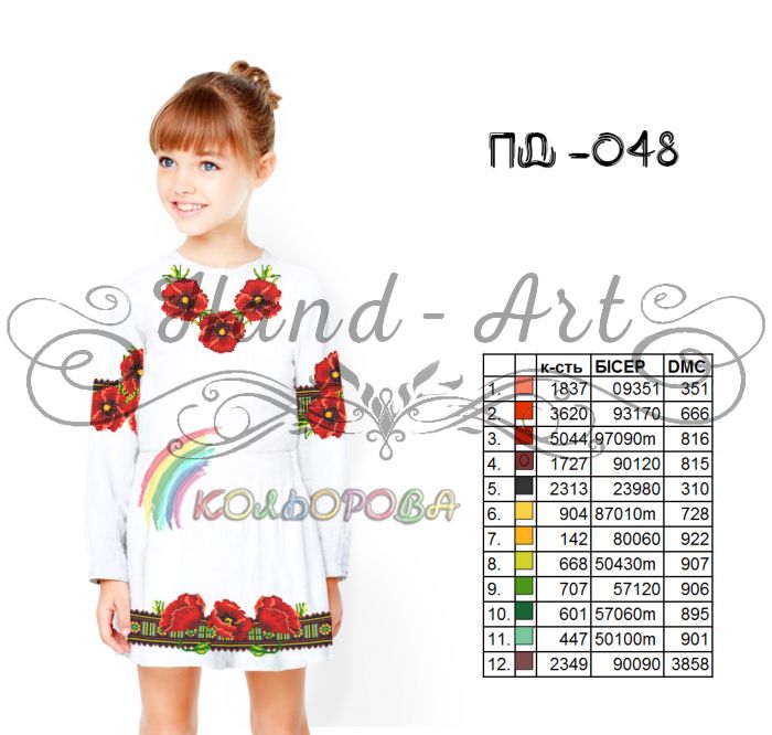 Заготовка під вишивку плаття дитячого з рукавами для дівчинки віком від 5 до 10 років.Плаття не пошите. Заготовка для вишивки бісером або нитками складається з чотирьох відрізів тканини з запасом.Розміри матеріалу: два рукава (40см.*60см.)+/- 2см. та основа (60см.*100см.)+/- 2см. Під вишивку бісером рекомендуємо підклеїти флізелін (додається в комплекті). Під вишивку нитками флізелін підклеювати не обов'язково! На чорній тканині малюнок не наноситься. В даному випадку малюнок друкується на водорозчинному флізеліні, який входить в комплект. Дану заготовку Ви можете пошити за своїми розмірами та фасоном. Заготовки для вишиванок можемо виконувати на домотканій тканині (білій і кольоровій) та габардині (білому і кольоровому). Зверніть увагу!! На натуральній тканині малюнок не такий чіткий як на габардині! При пранні малюнок не зникає. Дану модель за побажанням можемо комплектувати бісером Preciosa, рубкою Preciosa або нитками муліне DMC.