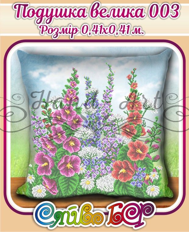 Схема нанесена на високоякісний габардин,ущільнений декількома шарами флізеліну. Розміри малюнку: 41 x 41см Розміри заготовки: 47 х 100 см.