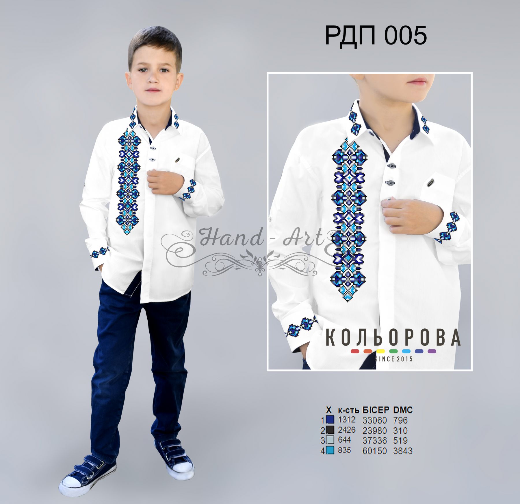 Пошита дитяча рубашка для хлопчика, класичного покрою під вишивку бісером або нитками.Склад : 100% котон.