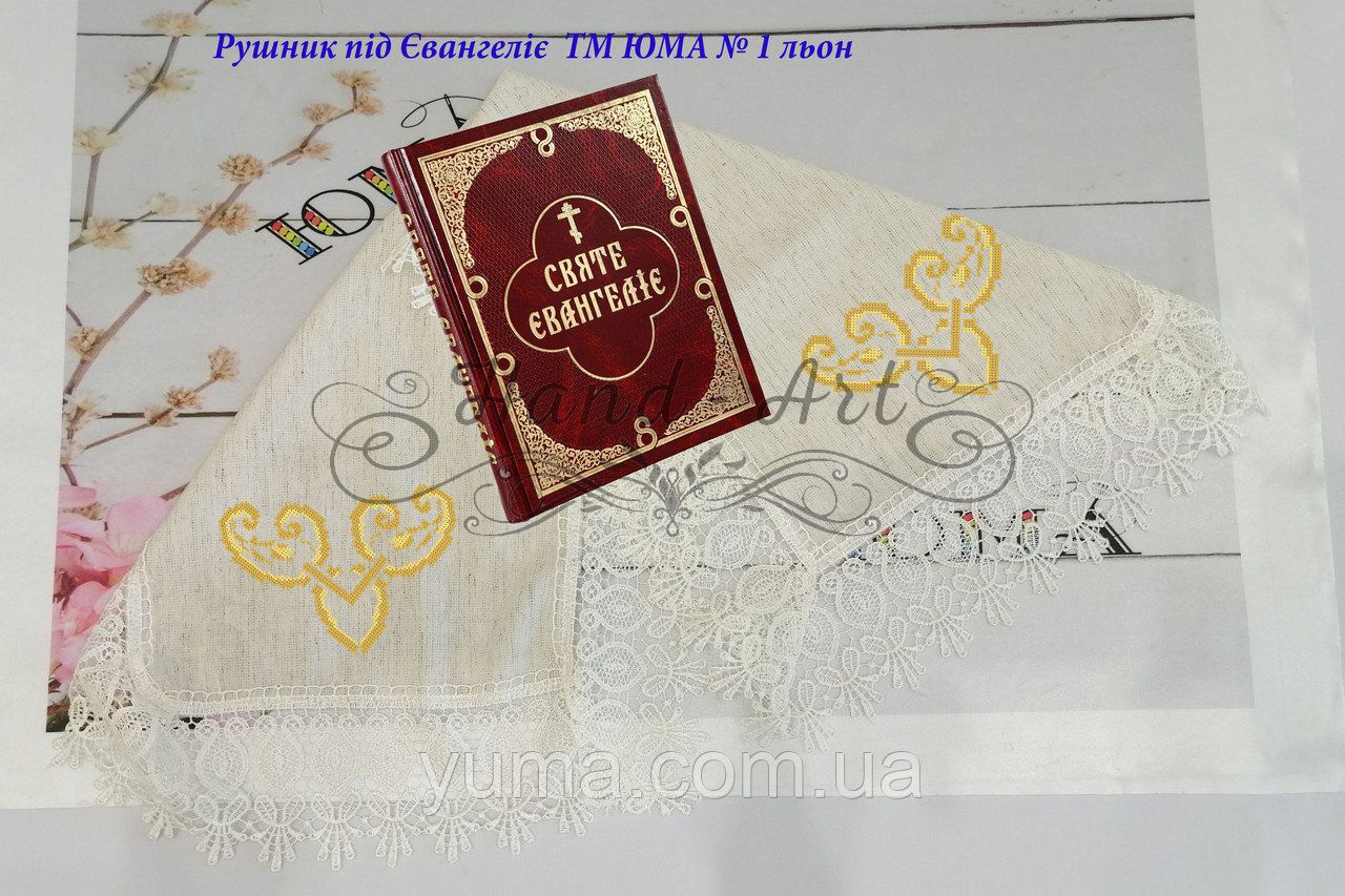 Рушник під Євангеліє для хрестин або вінчання. Тканина бавовна, льон або габардин. Оздоблений мереживом.