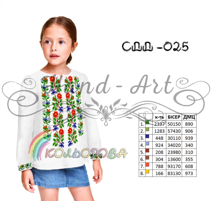 Заготовка для вишивки сорочки дитячої для дівчинки віком від 5 до10 років,під вишивку бісером або нитками.Сорочка не пошита. Заготовка складається з чотирьох відрізів тканини з запасом.Розміри матеріалу: два рукава (40см.*70см.) +\-2см. та основа (60см.*70см.) +\-2см.Під вишивку бісером рекомендуємо підклеїти флізелін (додається в комплекті).Під вишивку нитками флізелін підклеювати не обов'язково! На чорній тканині малюнок не наноситься. В даному випадку малюнок друкується на водорозчинному флізеліні, який входить в комплект.Ви можете пошити за своїми розмірами та фасоном.Зверніть увагу!! На натуральній тканині малюнок не такий чіткий як на габардині! При пранні малюнок не зникає. Дану модель за побажанням можемо комплектувати бісером Preciosa, рубкою Preciosa або нитками муліне DMC.