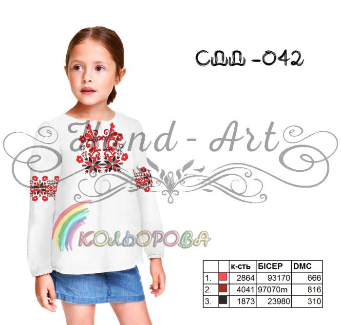 Заготовка для вишивки сорочки дитячої для дівчинки віком від 5 до10 років,під вишивку бісером або нитками.Сорочка не пошита. Заготовка складається з чотирьох відрізів тканини з запасом.Розміри матеріалу: два рукава (40см.*70см.) +\-2см. та основа (60см.*70см.) +\-2см.Під вишивку бісером рекомендуємо підклеїти флізелін (додається в комплекті).Під вишивку нитками флізелін підклеювати не обов'язково! На чорній тканині малюнок не наноситься. В даному випадку малюнок друкується на водорозчинному флізеліні, який входить в комплект.Ви можете пошити за своїми розмірами та фасоном.Зверніть увагу!! На натуральній тканині малюнок не такий чіткий як на габардині! При пранні малюнок не зникає. Дану модель за побажанням можемо комплектувати бісером Preciosa, рубкою Preciosa або нитками муліне DMC.
