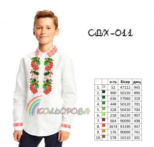 Заготовка для вишивки сорочки дитячої для хлопчика віком від 5 до10 років,під вишивку бісером або нитками.Сорочка не пошита. Заготовка складається з чотирьох відрізів тканини з запасом.Розміри матеріалу: два рукава (40см.*70см.) +\-2см. та основа (60см.*70см.) +\-2см.Під вишивку бісером рекомендуємо підклеїти флізелін (додається в комплекті).Під вишивку нитками флізелін підклеювати не обов'язково! На чорній тканині малюнок не наноситься. В даному випадку малюнок друкується на водорозчинному флізеліні, який входить в комплект.Ви можете пошити за своїми розмірами та фасоном.Зверніть увагу!! На натуральній тканині малюнок не такий чіткий як на габардині! При пранні малюнок не зникає. Дану модель за побажанням можемо комплектувати бісером Preciosa, рубкою Preciosa або нитками муліне DMC.