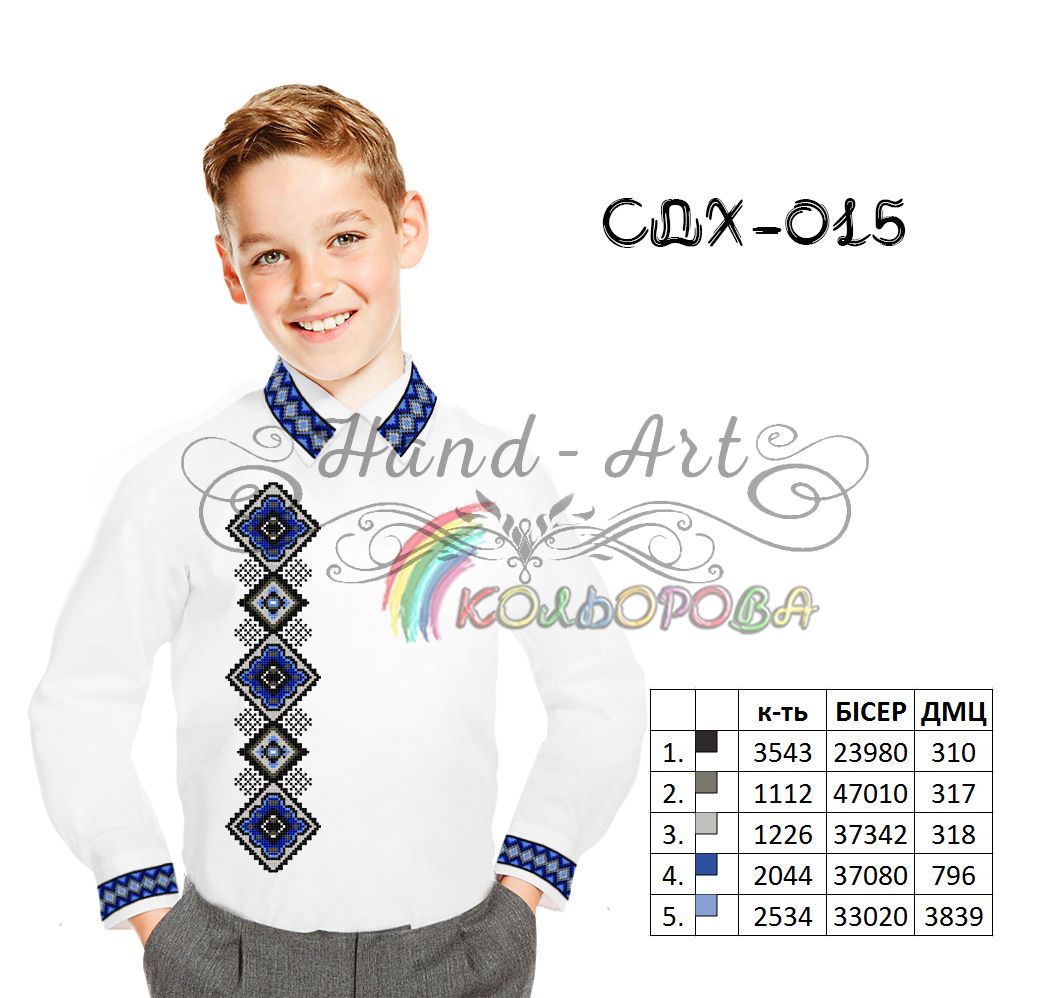 Заготовка для вишивки сорочки дитячої для хлопчика віком від 5 до10 років,під вишивку бісером або нитками.Сорочка не пошита. Заготовка складається з чотирьох відрізів тканини з запасом.Розміри матеріалу: два рукава (40см.*70см.) +\-2см. та основа (60см.*70см.) +\-2см.Під вишивку бісером рекомендуємо підклеїти флізелін (додається в комплекті).Під вишивку нитками флізелін підклеювати не обов'язково! На чорній тканині малюнок не наноситься. В даному випадку малюнок друкується на водорозчинному флізеліні, який входить в комплект.Ви можете пошити за своїми розмірами та фасоном.Зверніть увагу!! На натуральній тканині малюнок не такий чіткий як на габардині! При пранні малюнок не зникає. Дану модель за побажанням можемо комплектувати бісером Preciosa, рубкою Preciosa або нитками муліне DMC.
