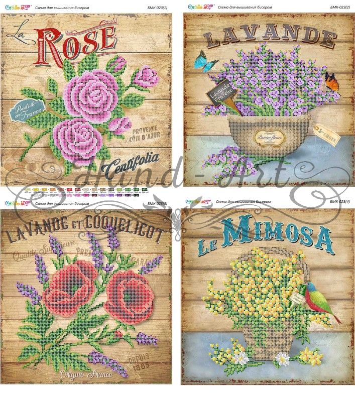 Схема нанесена на високоякісний габардин,ущільнений декількома шарами флізеліну.Розмір 27,8х27,8 см -4шт.